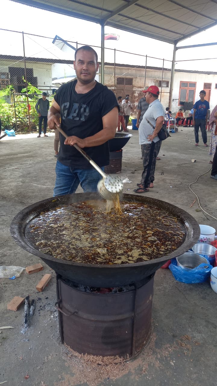 Semua Warga Khususnya laki-laki bahu-membahu menyiapkan bumbu dan memasak kuah belangong, yang lezat dan kaya rempah. “Masakan ini simbol kebersamaan kita,” ujar pak Keuchik Azhari