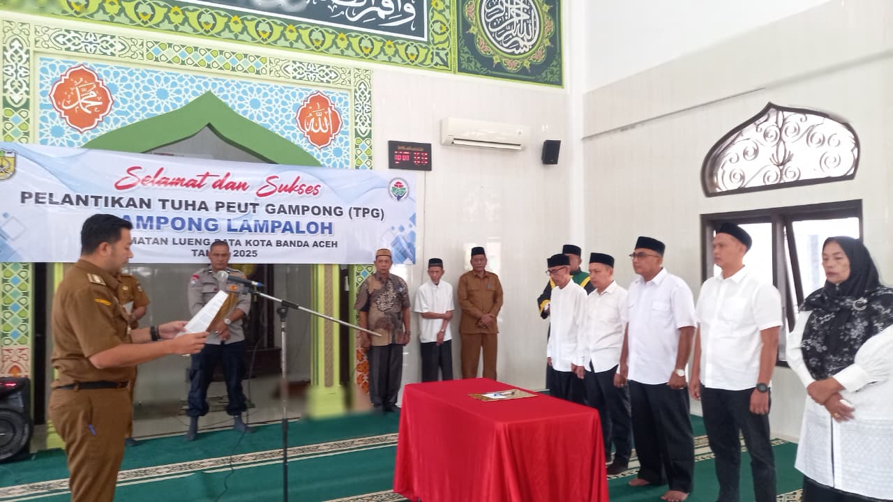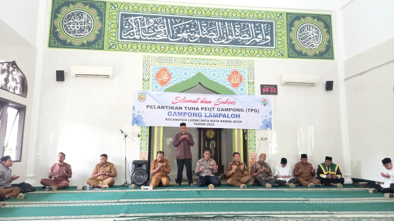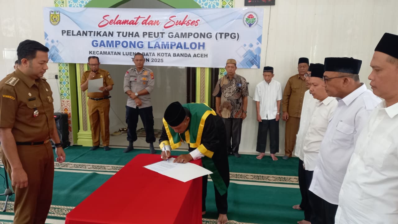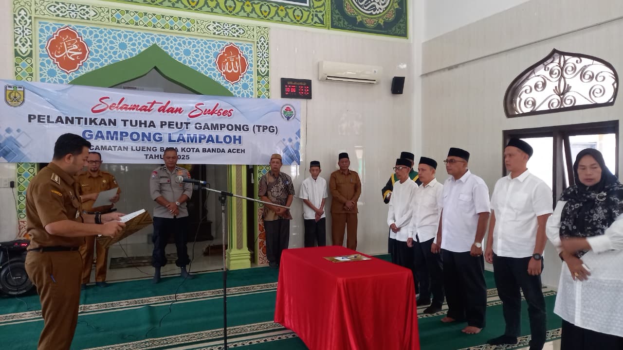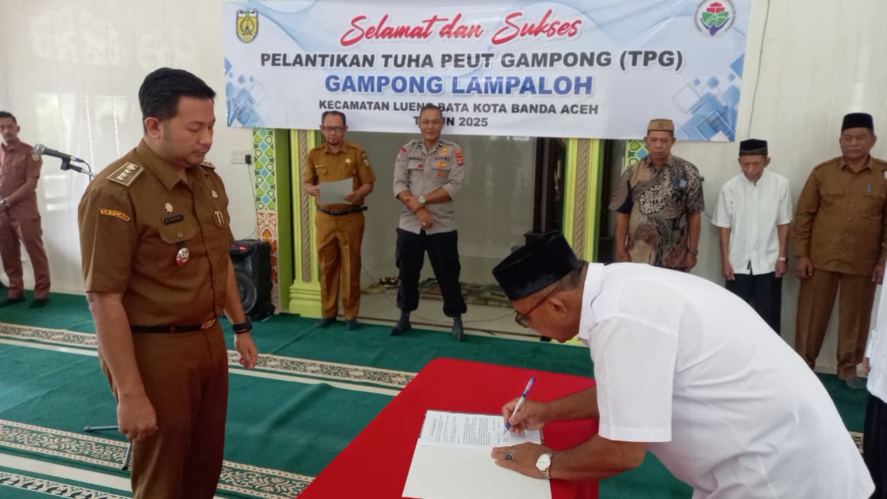 Gampong Lampaloh, [tanggal] – Camat Lueng Bata, [Kharisma], melantik TPG (Tuha Peut Gampong) Gampong Lampaloh periode 2025-2030. Acara ini dihadiri tokoh masyarakat, warga, dan undangan lainnya.